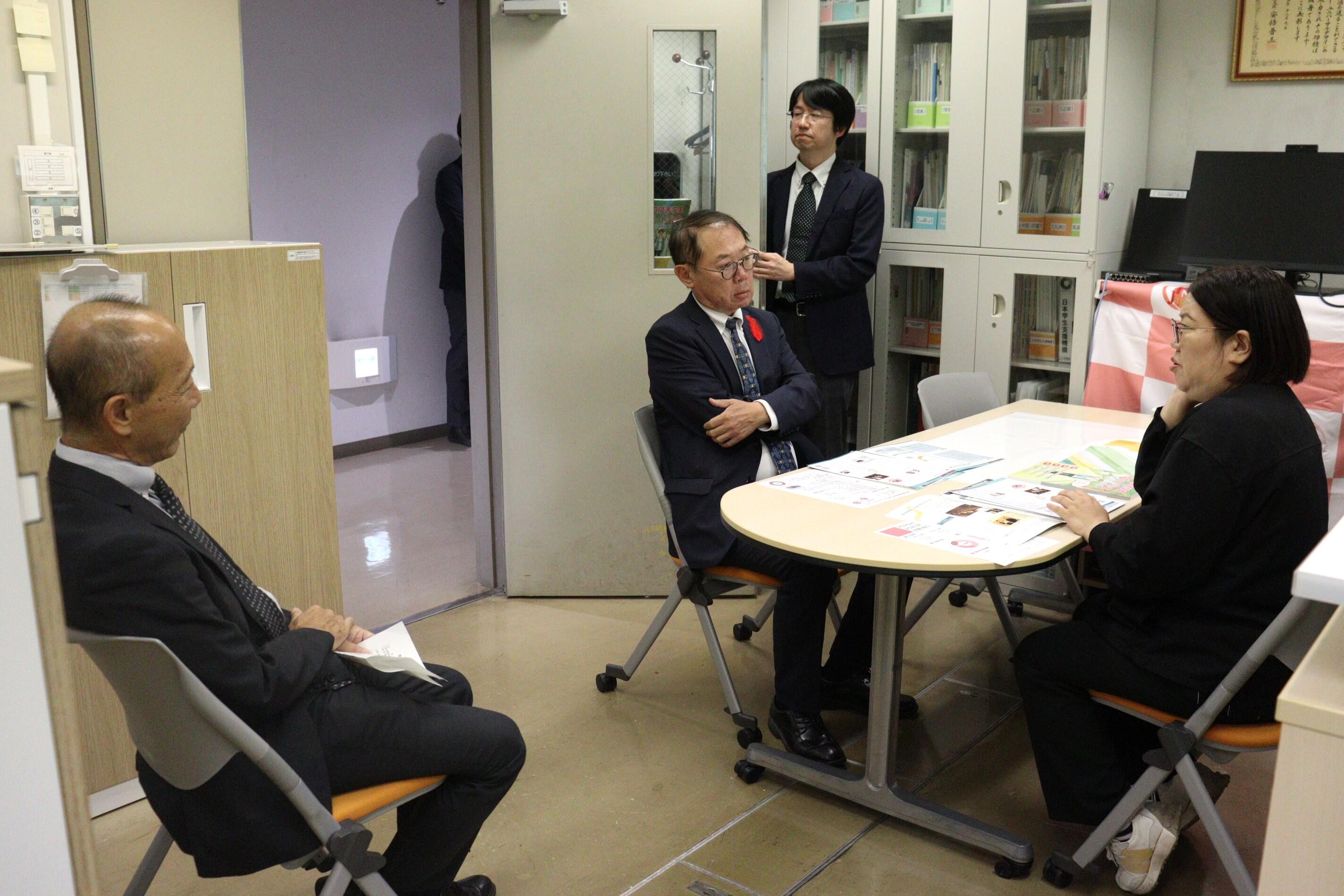はじめに、石原学長から本学の概要説明を行い、その後、岩間理事・事務局長、谷副学長を交えて意見交換を行いました。